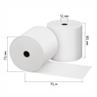 Чековая лента изготовлена из термобумаги. Бумажное полотно с наружным термослоем имеет ширину 80 мм и общую длину 70 метров. Диаметр намотки - 70-73 мм, диаметр втулки - 12 мм (1/2″). Поставляются в термоусадочной пленке и гофрокоробах. Ролики для термопечати используются в кассовых аппаратах и калькуляторах со встроенным или внешним термопринтером.